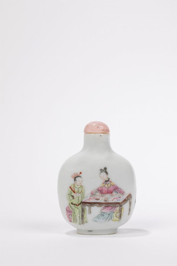 SNUFF BOTTLE IN PORCELLANA FAMIGLIA ROSA, Cina, periodo Daoguang (1820-1850)