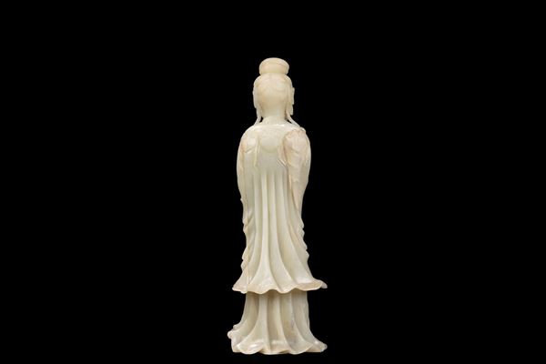 UNA GRANDE FIGURA IN GIADA CELADON CHIARA DI UNA GUANYIN IN PIEDI, Cina, dinastia Qing, XIX secolo
