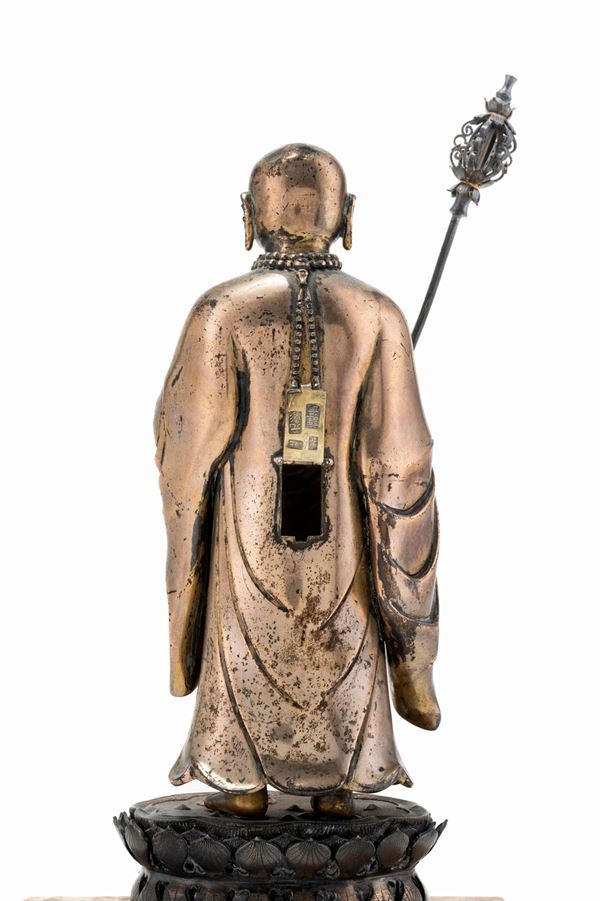 BUDDHA IN ARGENTO DORATO, Cina, fine XIX / inizio XX secolo