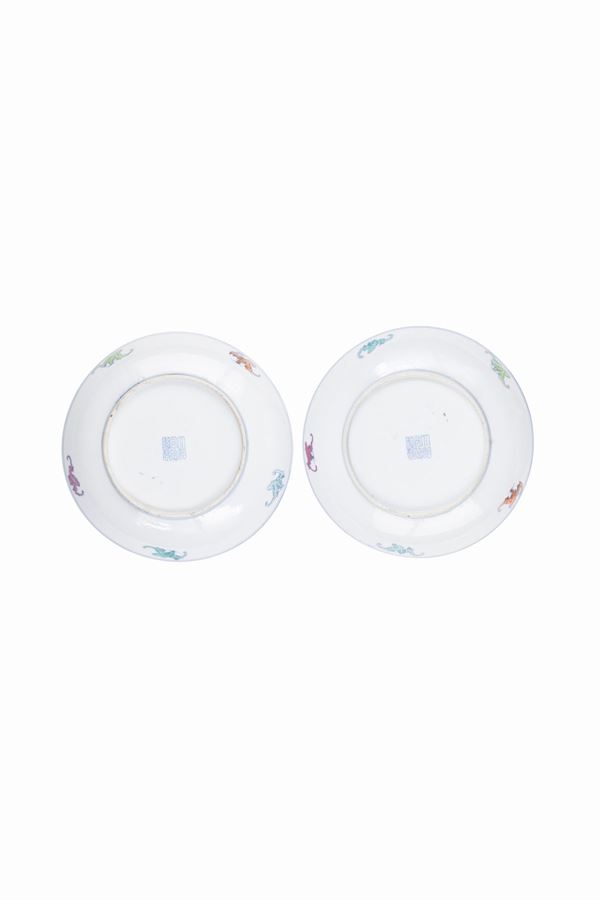 COPPIA DI PIATTINI IN PORCELLANA DOUCAI, Cina, fine XIX / inizio XX secolo