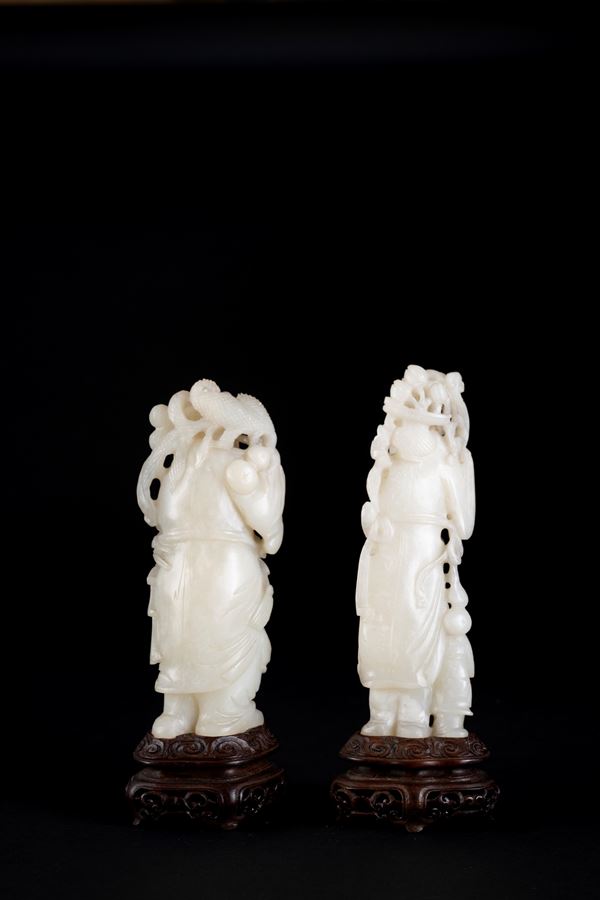 DUE FIGURE IN GIADA BIANCA, Cina, XIX / XX secolo
