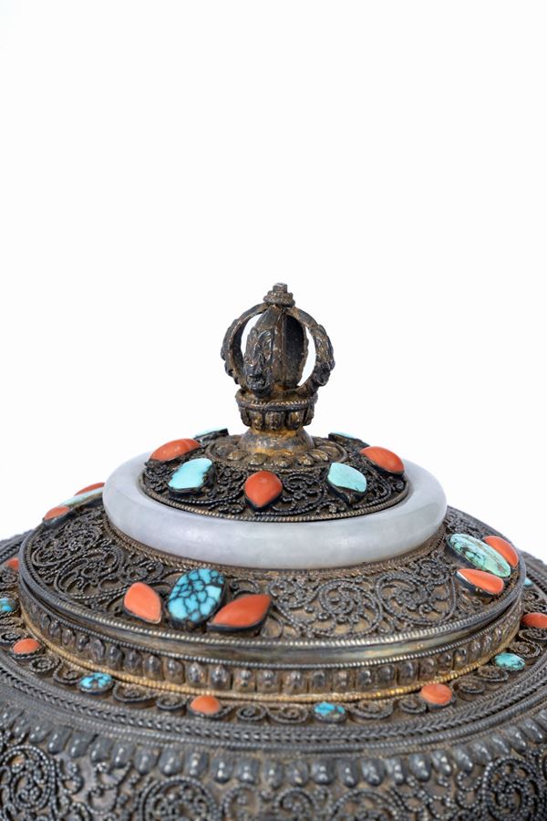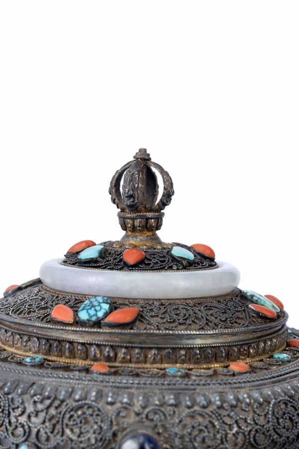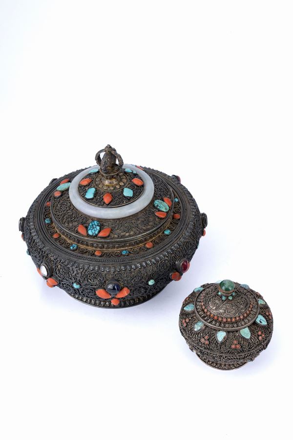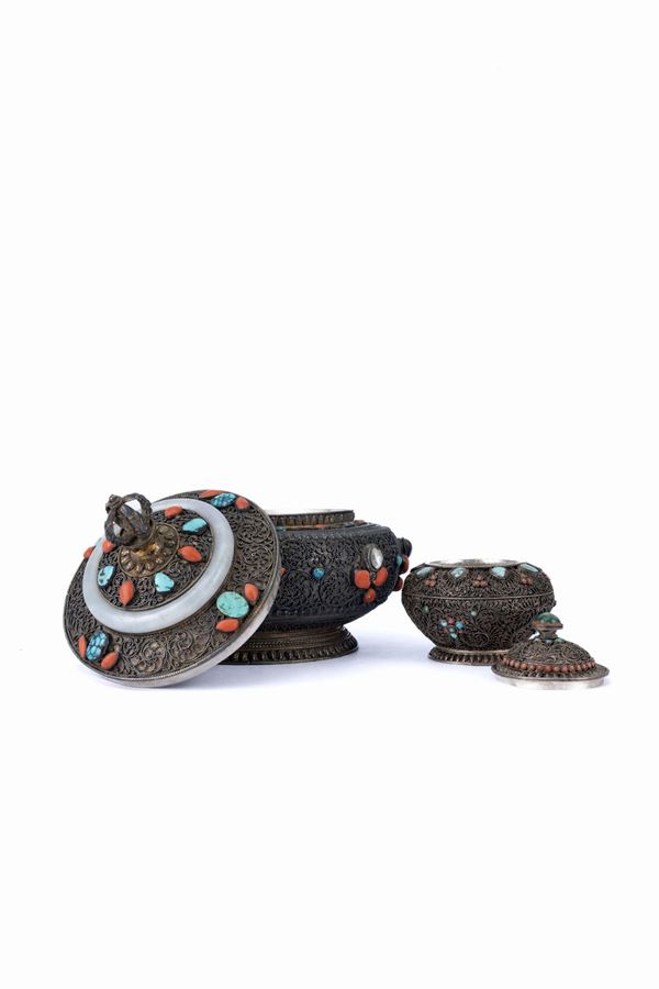 DUE VASI IN ARGENTO E GIADA, Cina, XIX / XX secolo