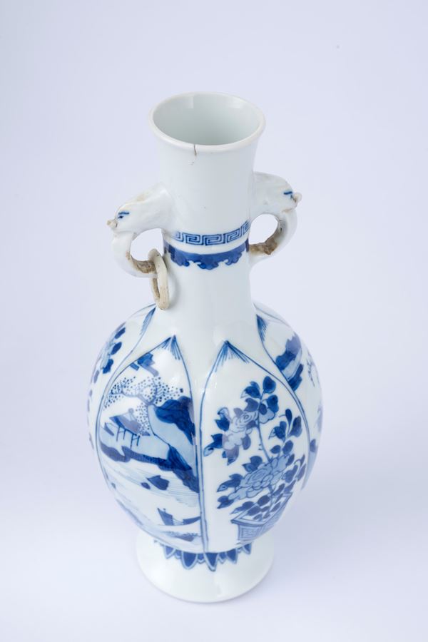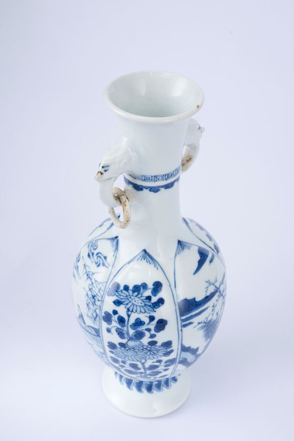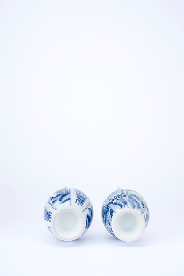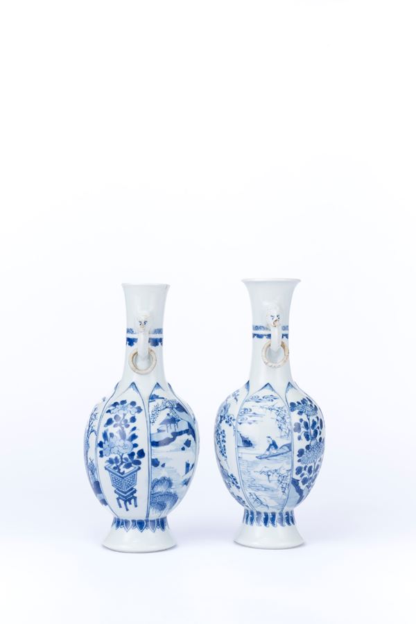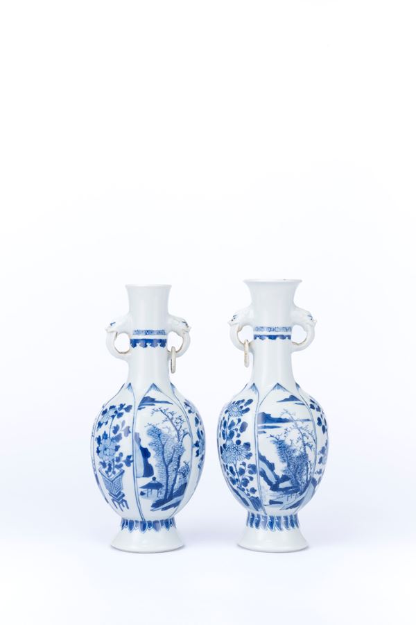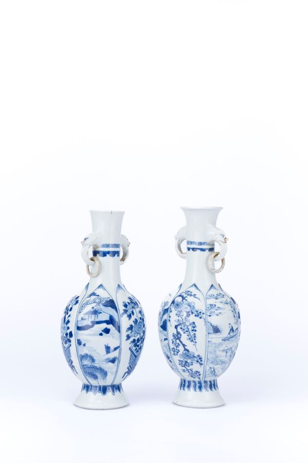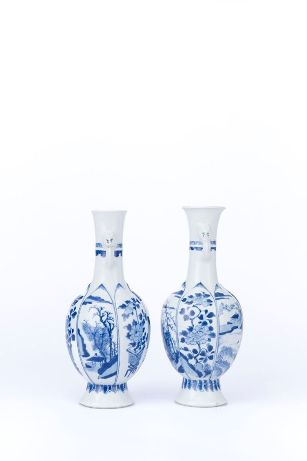 DUE VASI IN PORCELLANA BIANCA E BLU, Cina, dinastia Qing, periodo Kangxi (1661-1722)