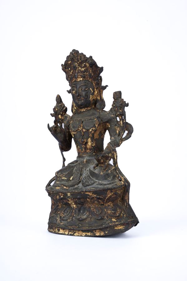 FIGURA IN BRONZO DORATO, Cina, dinastia Ming (1368-1644)