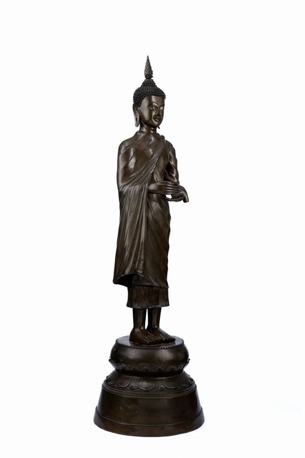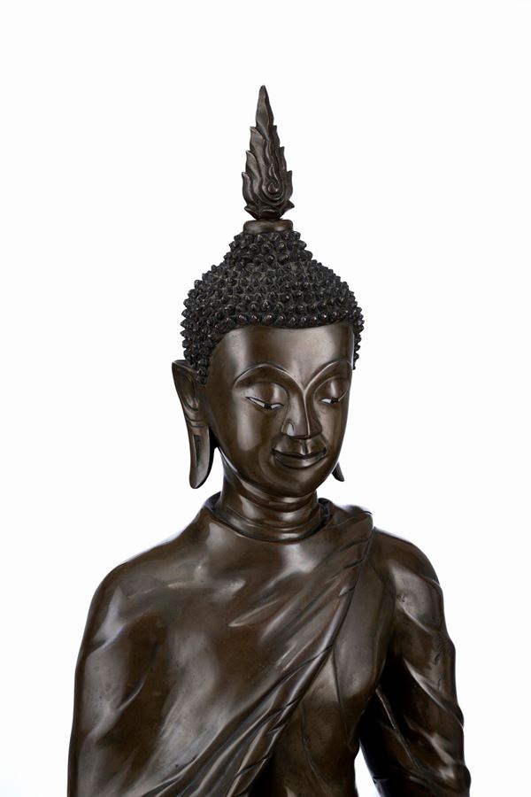 GRANDE FIGURA DI BUDDA IN BRONZO, Tailandia, XIX / XX secolo