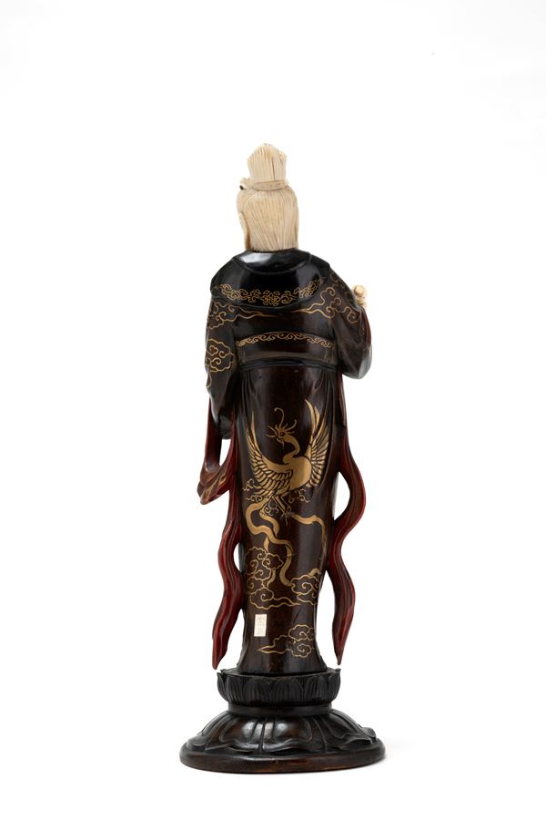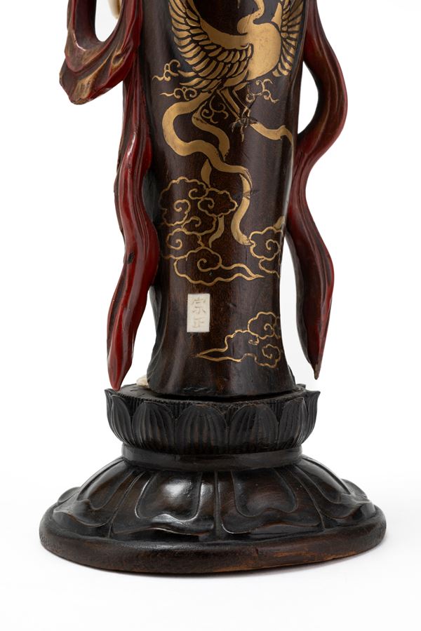 ☼OKIMONO IN LEGNO LACCATO E AVORIO, Giappone, periodo Meiji (1868-1912)