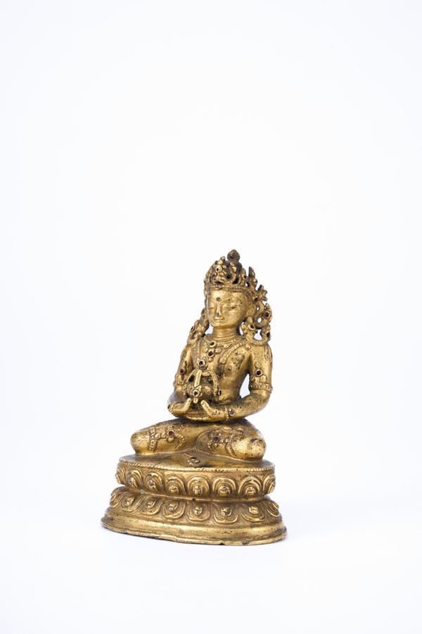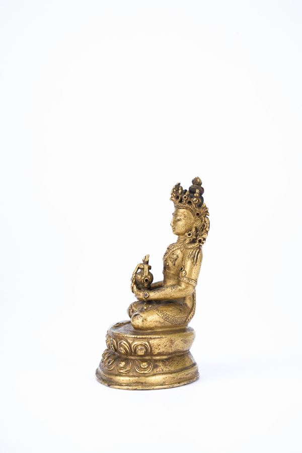 PICCOLO AMITAYUS IN BRONZO DORATO, Tibet - Nepal, XVIII / XIX secolo