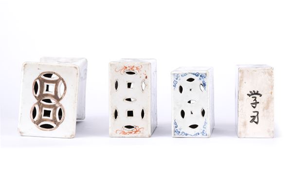 QUATTRO CUSCINI IN PORCELLANA, Cina, XIX / XX secolo