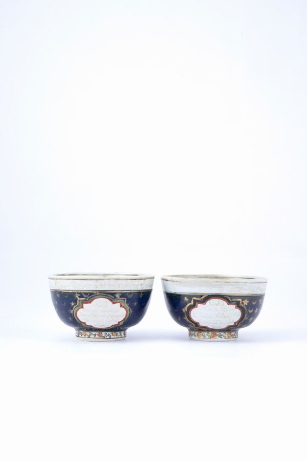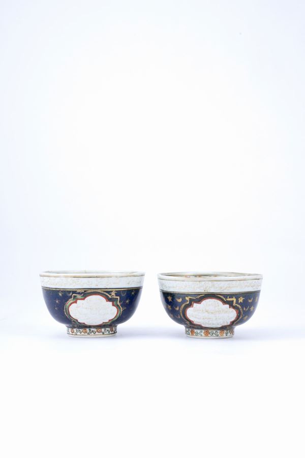 RARA COPPIA DI TAZZINE IN PORCELLANA PER IL MERCATO OTTOMANO, Cina, dinastia Qing, XVIII secolo