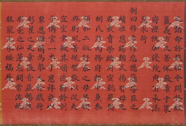 Questo editto è stato emesso il 20 novembre del ventiseiesimo anno del regno di Qianlong (cioè il 1761) dall'imperatore Qianlong per onorare i meriti del funzionario dell'Ufficio degli Interni, nonché partecipante al consiglio, Shutaì. Il documento conferisce titoli onorifici ai genitori di Shutaì: suo padre, Ahalián, viene insignito del titolo di Zhongxian Dafu (Grande Ufficiale della Costituzione), mentre sua madre, di cognome Hu, ricevette il titolo di Gongren (Signora di Riverenza).