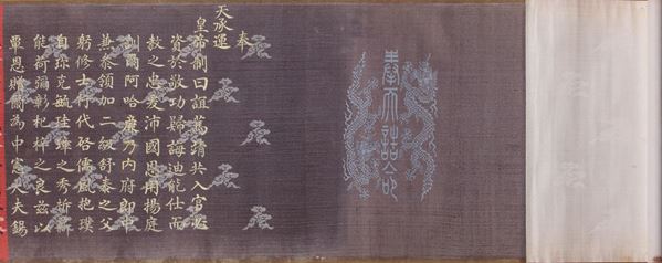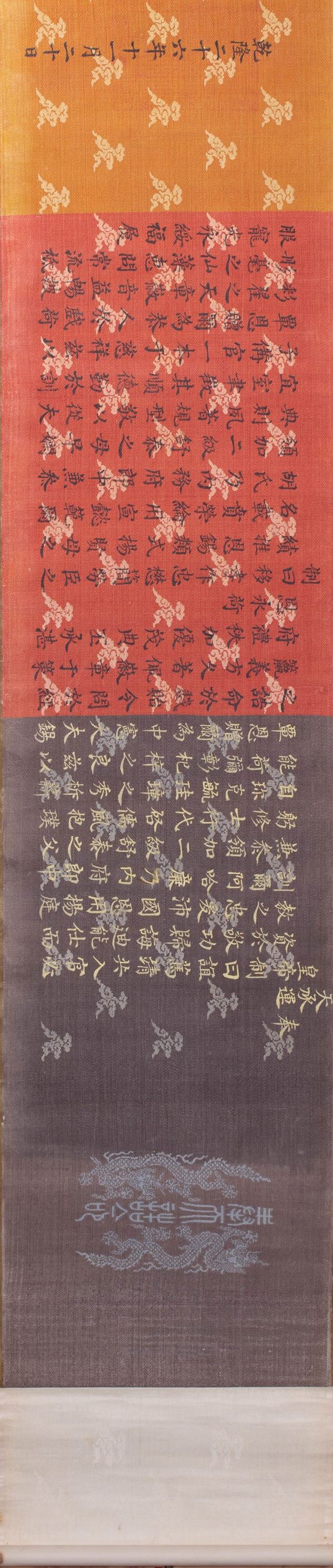 RARO EDITTO IMPERIALE IN BROCCATO DEL PERIODO QIANLONG, Cina, datato 1761
