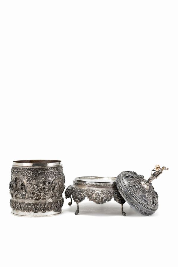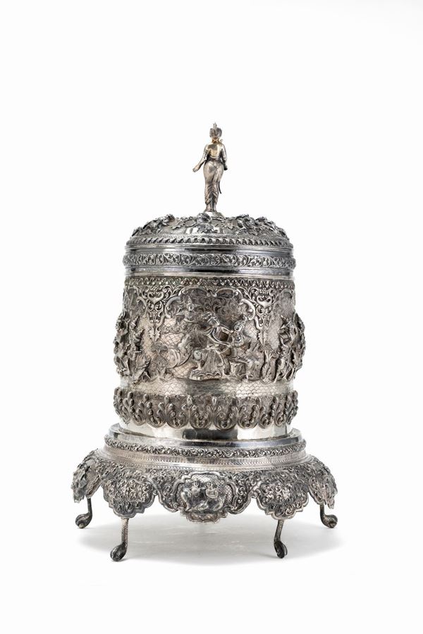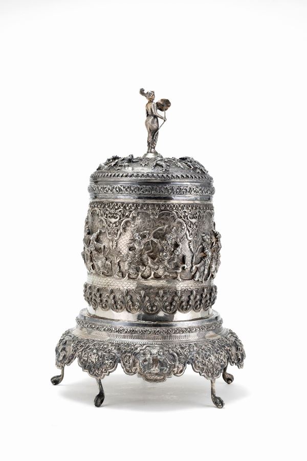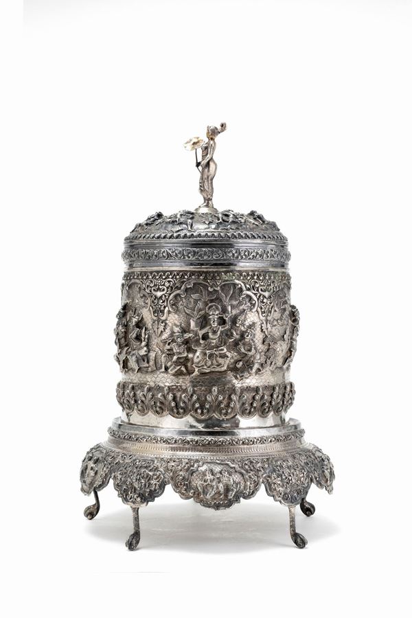 SCATOLA CON BASE IN ARGENTO, Birmania, XIX / XX secolo
