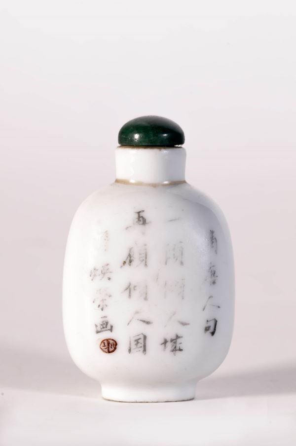 SNUFF BOTTLE IN PORCELLANA QIANJIANG FIRMATA DA ZHAN HUANRONG, Cina, fine XIX / inizio XX secolo
