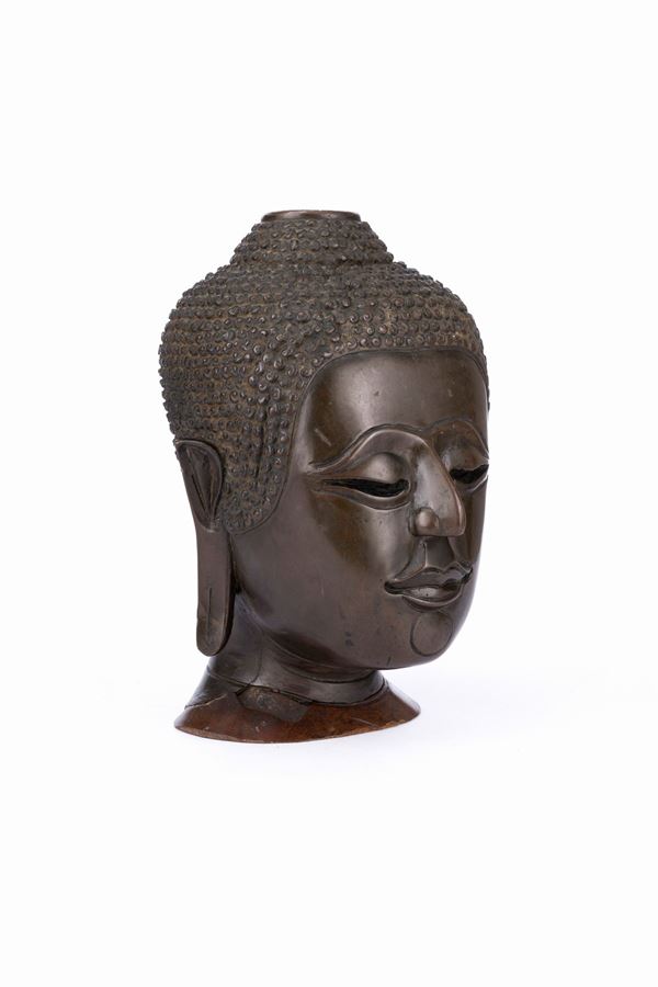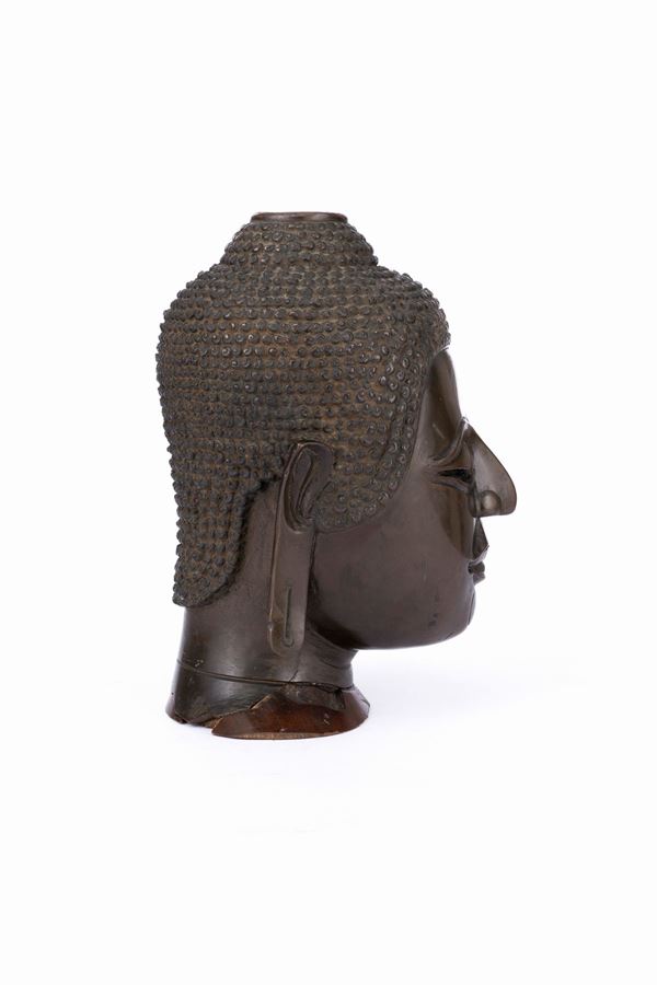 TESTA IN BRONZO, Tailandia, XIX secolo