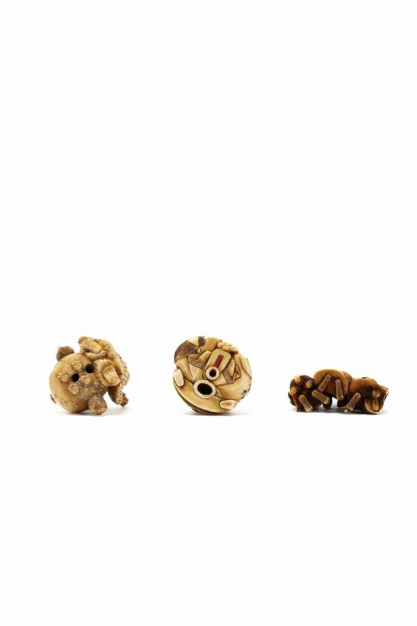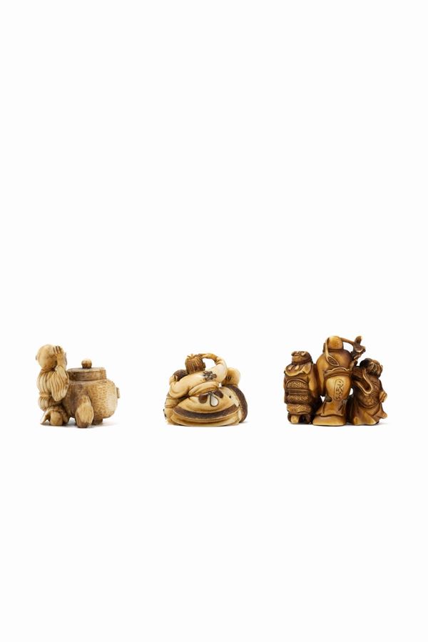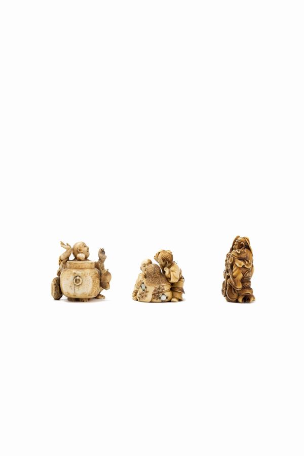 ☼TRE NETSUKE IN AVORIO, Giappone, periodo Meiji (1868-1912)