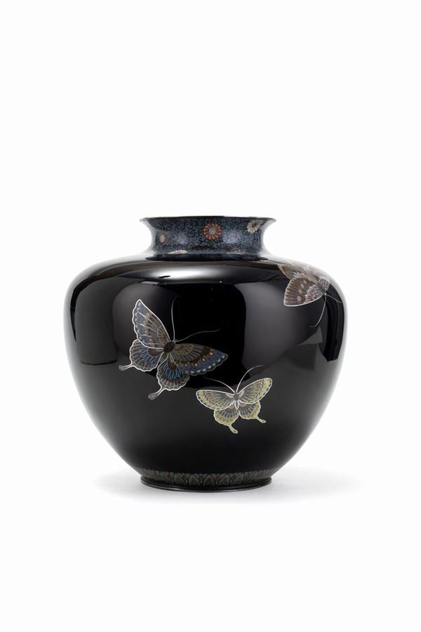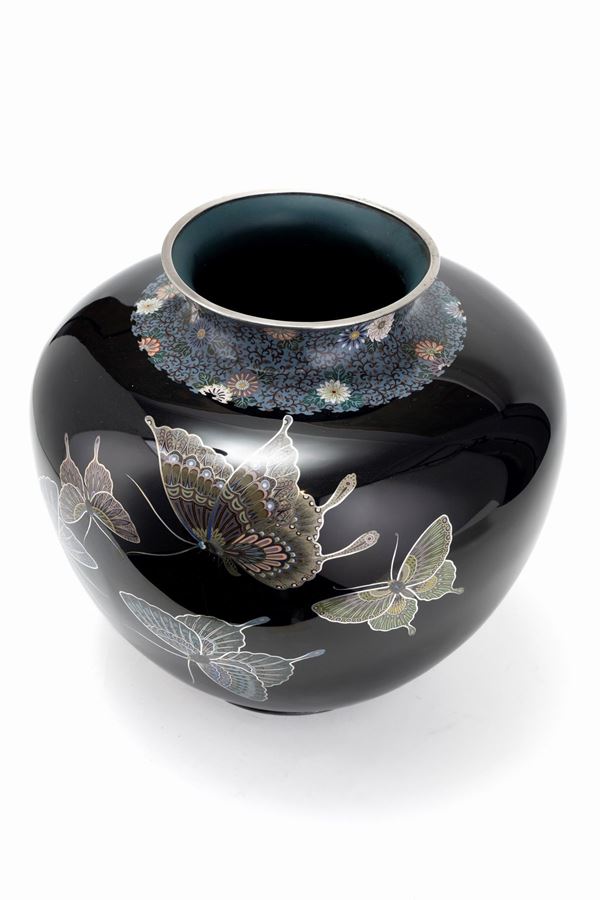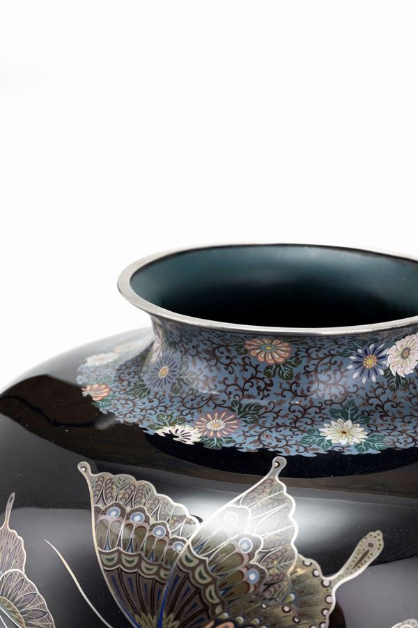 VASO IN ARGENTO E CLOISONNÉ, Giappone, periodo Meiji (1868-1912)