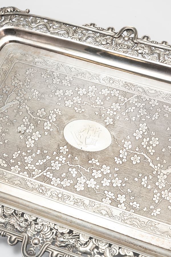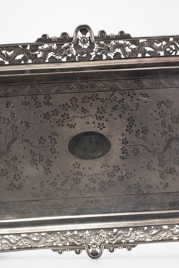 VASSOIO IN ARGENTO, Cina, fine XIX / inizio XX secolo