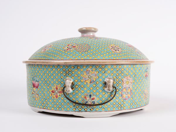 CIOTOLA CON COPERCHIO IN PORCELLANA FAMIGLIA ROSA, Cina, dinastia Qing, XIX secolo