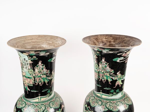COPPIA DI GRANDI VASI IN PORCELLANA FAMIGLIA NERA, Cina, XX secolo