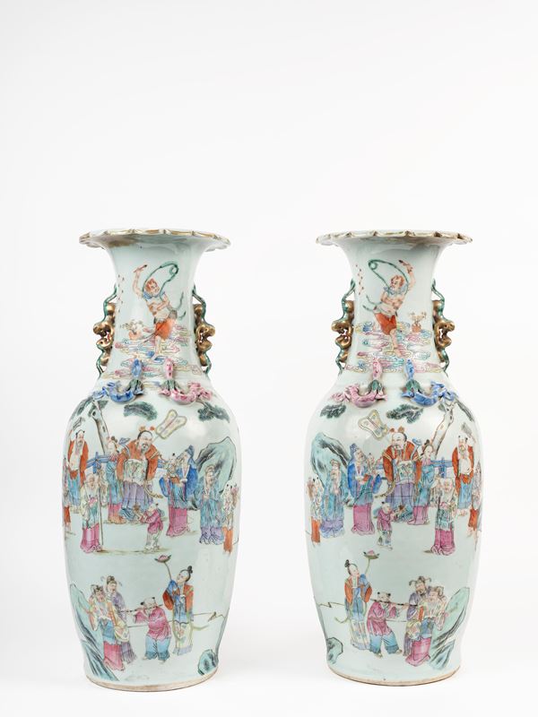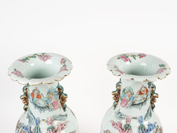 COPPIA DI VASI IN PORCELLANA FAMIGLIA ROSA, Cina, dinastia Qing, fine XIX secolo