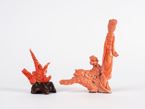 ☼DUE FIGURE IN CORALLO MOMO O CERASUOLO, Cina, inizio XX secolo