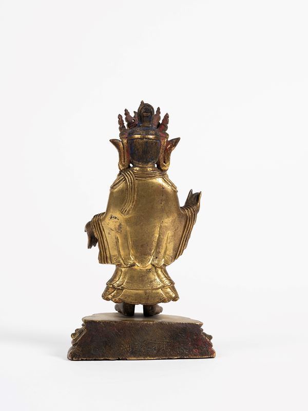 FIGURA IN BRONZO DORATO, Cina / Mongolia, XVIII / XIX secolo