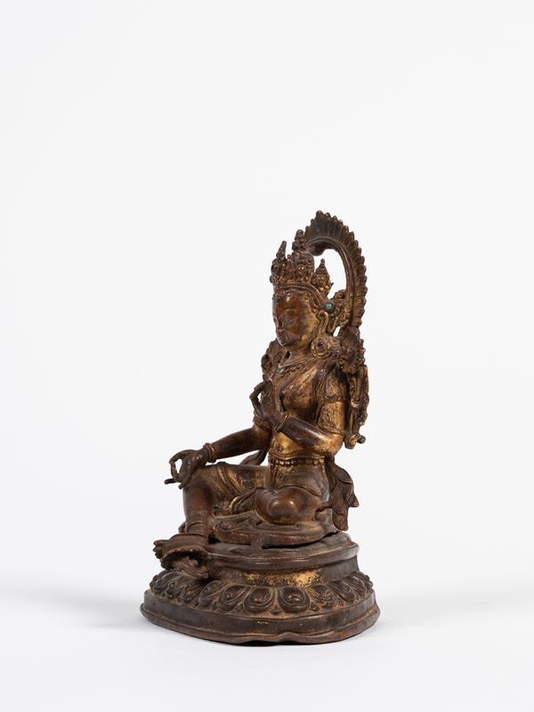 FIGURA IN BRONZO DORATO, Nepal, XVII / XVIII secolo