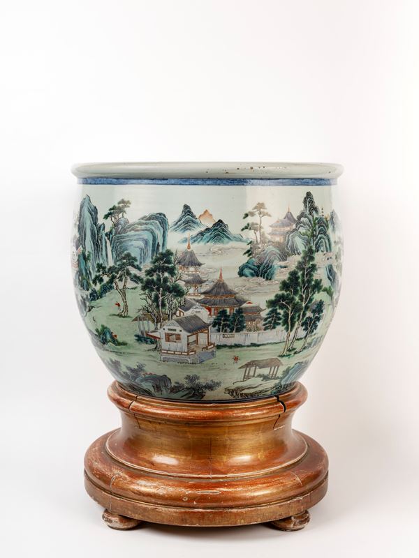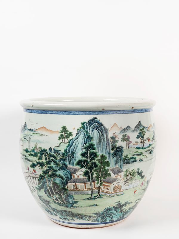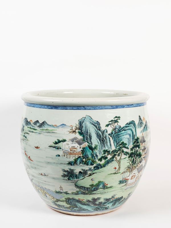 GRANDE CACHEPOT IN PORCELLANA FAMIGLIA ROSA, Cina, dinastia Qing, periodo Qianlong (1735-1796)