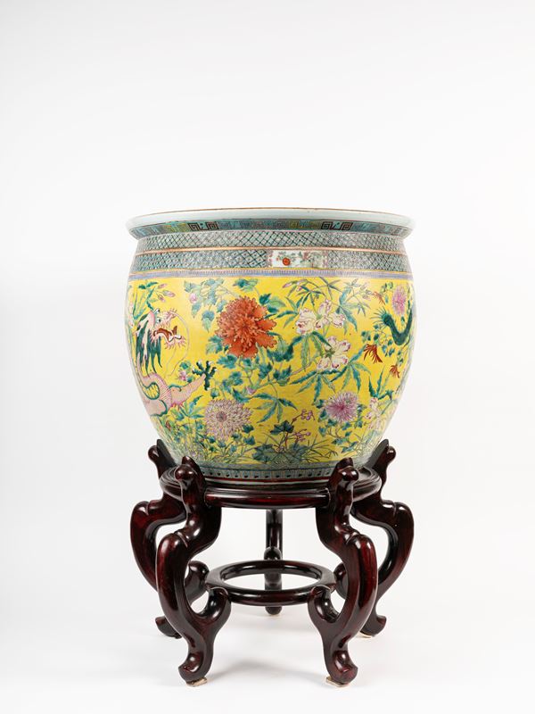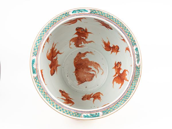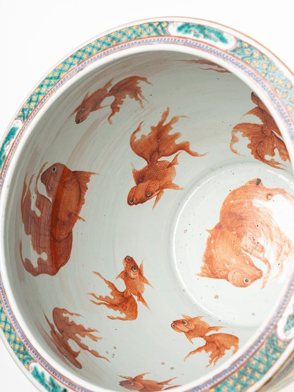 GRANDE VASCA PER PESCI IN PORCELLANA FAMIGLIA ROSA, Cina, dinastia Qing, fine XIX secolo