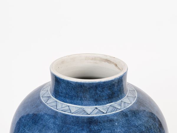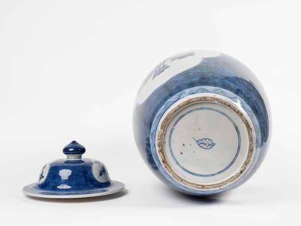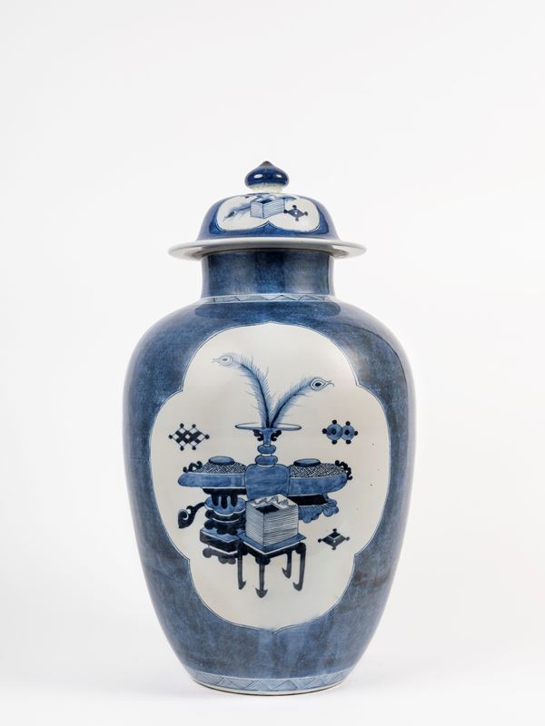 GRANDE VASO CON COPERCHIO IN PORCELLANA BIANCA E BLU, Cina, dinastia Qing, fine XIX secolo