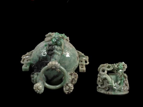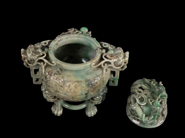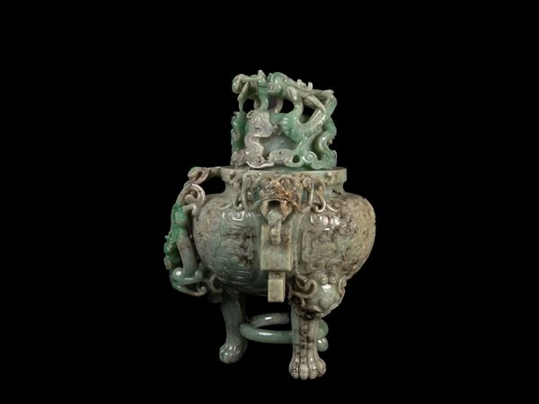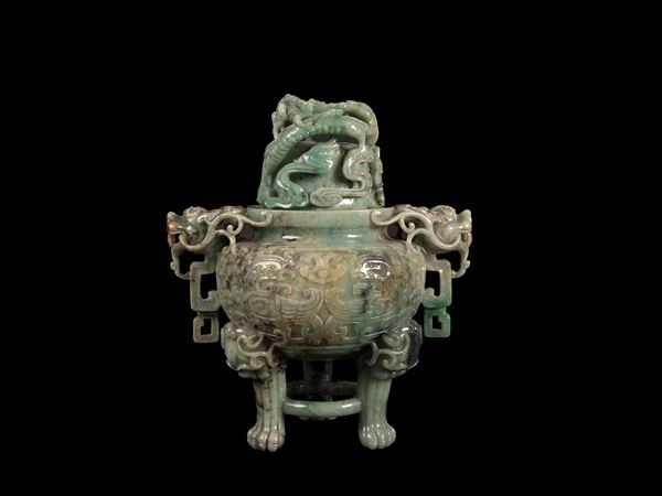 INCENSIERE TRIPODE IN GIADEITE, Cina, fine XIX / inizio XX secolo