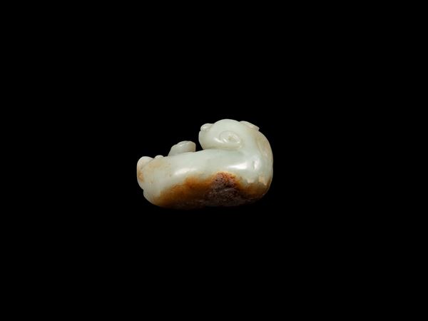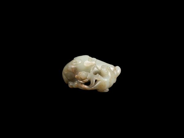 INTAGLIO IN GIADA CELADON CHIARO E RUGGINE, Cina, dinastia Qing (1644-1911)