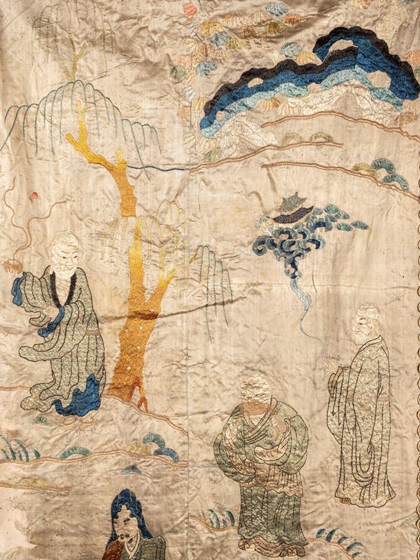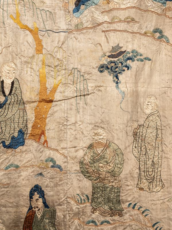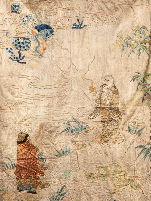 QUATTRO TESSUTI IN SETA RICAMATA, Cina, fine XIX / inizio XX secolo