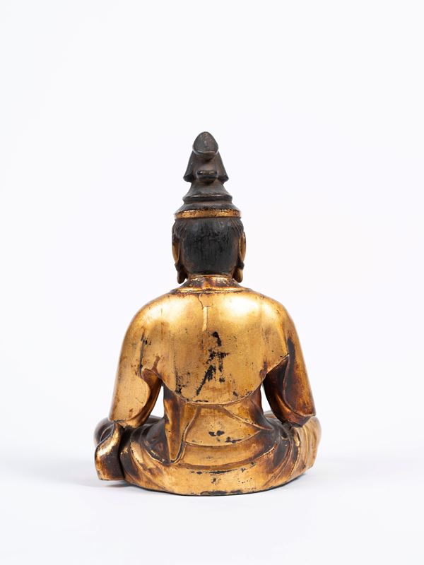Al suo interno si trova Avalokitesvara seduto sopra una base a fiore di loto.