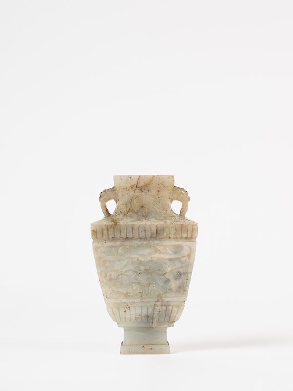 Il vaso in giada scolpito con motivi taotie e due orecchie a forma di elefante.