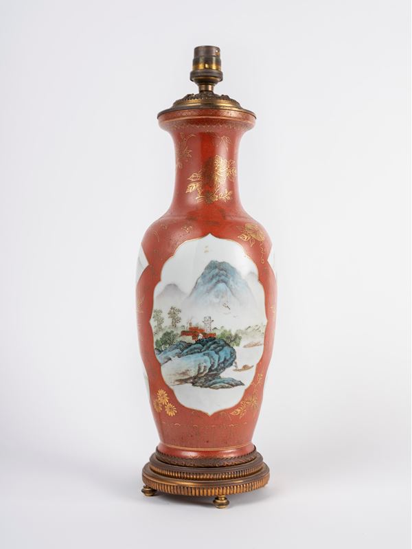 VASO IN PORCELLANA MONTATO A LAMPADA, Cina, XX secolo
