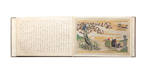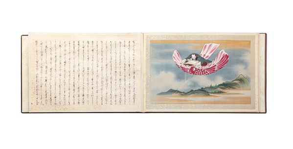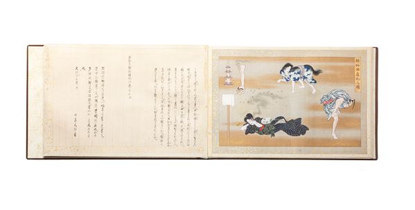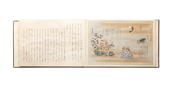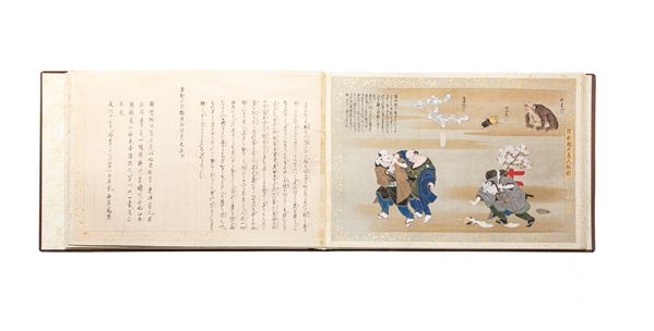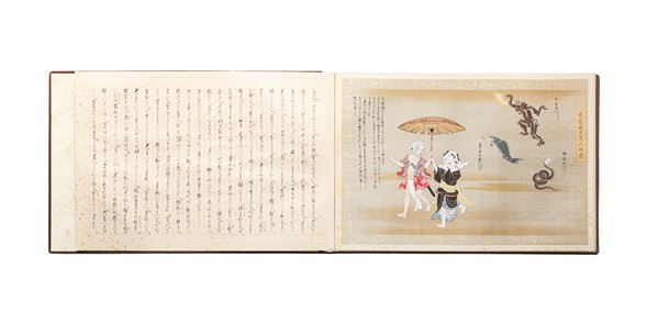 L'album illustra una delle opere rappresentative del celebre romanziere giapponese Takizawa Bakin (4 luglio 1767 – 1 dicembre 1848), "Musō Byōe Kochō Monogatari" che è stato pubblicato nel 1810. Questo romanzo è un tipico esempio della letteratura ukiyo-e del periodo Edo in Giappone, e riflette una profonda esplorazione dei temi dell’animo umano, del destino e del rapporto tra illusione e realtà. Non è solo un'opera ricca di elementi fantastici, ma anche una narrazione carica di significato filosofico.