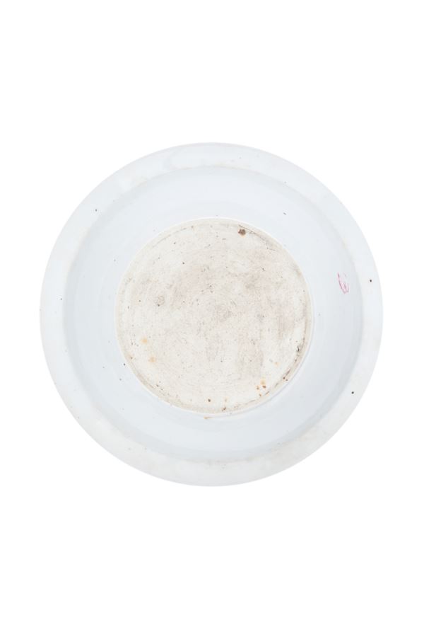 Ben dipinta all'interno con una dama appoggiata ad uno scrittoio con un bambino che la abbraccia sotto ad una fronda fiorita; sul bordo sono presenti iscrizioni tra le quali compare la firma di Yimao (義茂) e la data ciclica yi wei (乙未) corrispondente all'anno 1895.