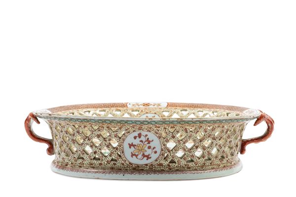 CESTINO IN PORCELLANA FORATA FAMIGLIA ROSA, Cina, periodo Qianlong (1735-1796)
