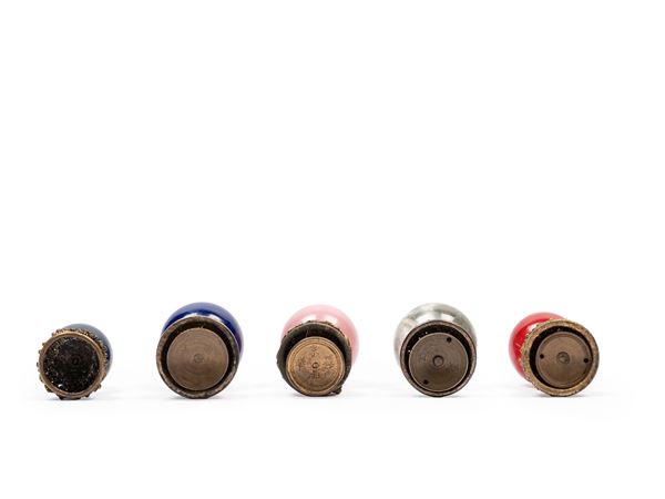CINQUE PUNTALI DA CAPPELLO IN VETRO E METALLO, Cina, XIX / XX secolo