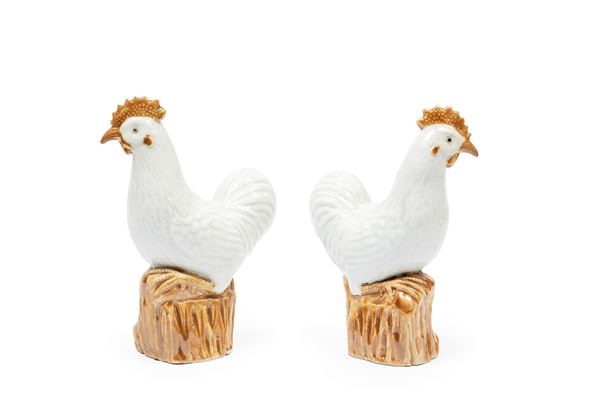 COPPIA DI GALLI IN PORCELLANA, Cina, XVIII secolo