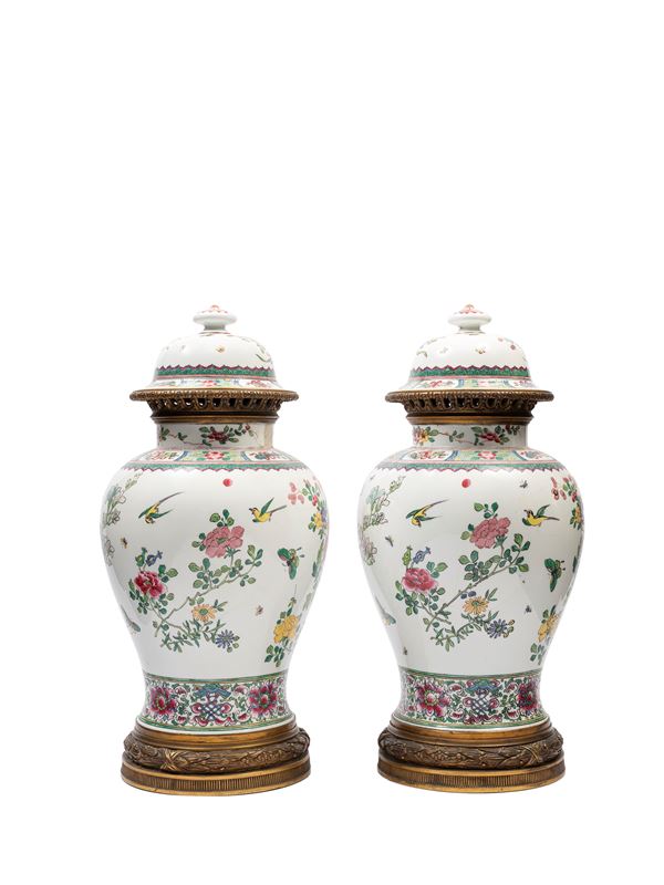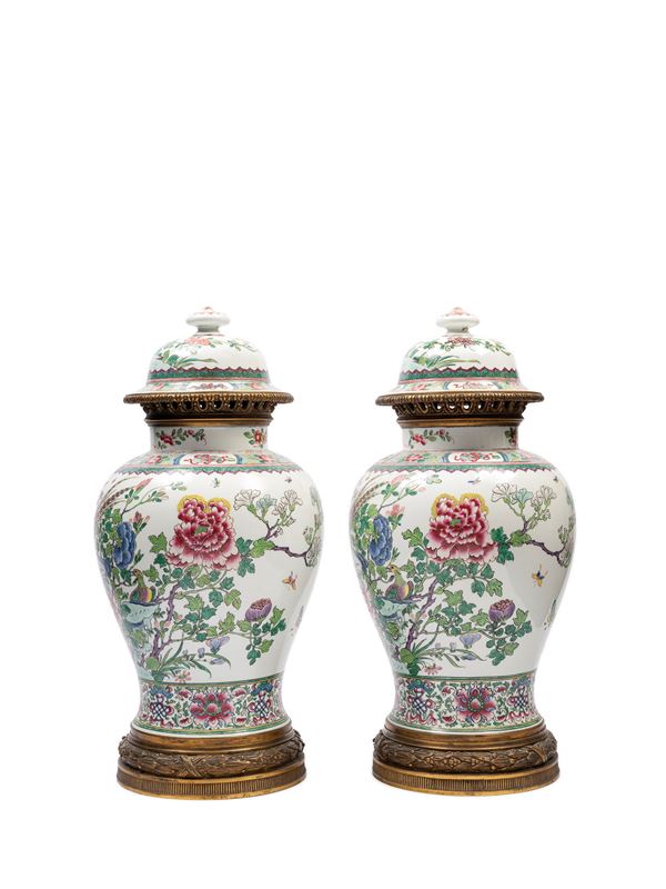 COPPIA DI POTICHES IN PORCELLANA FAMIGLIA ROSA, Samson, XIX secolo