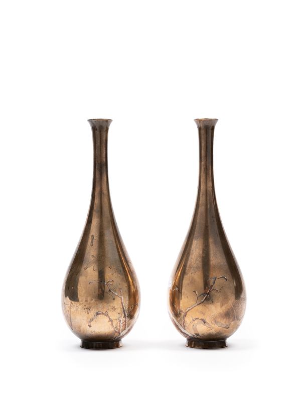 COPPIA DI VASETTI IN METALLO, Giappone, XX secolo