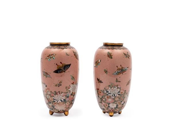 COPPIA DI VASI CLOISONNÉ, Giappone, periodo Meiji (1868-1912)