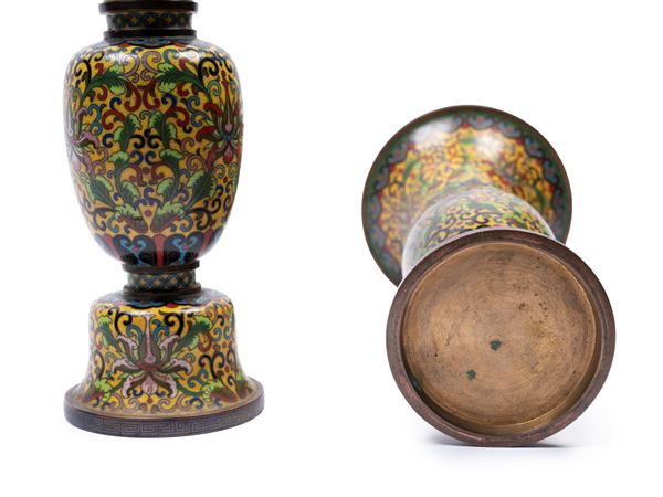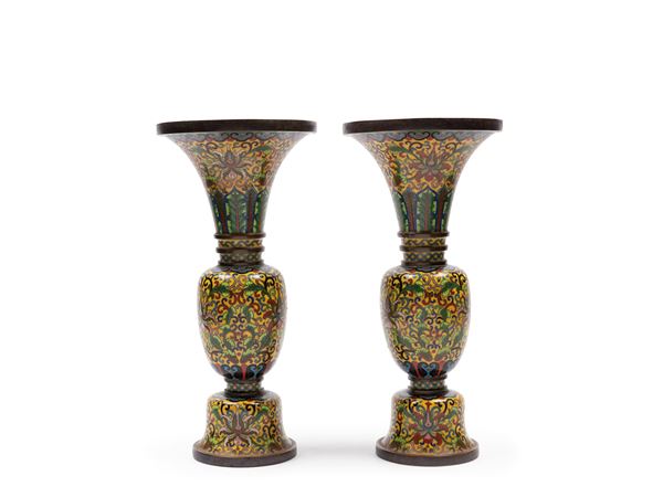 COPPIA DI VASI IN CLOISONNÉ, Cina, XIX / XX secolo