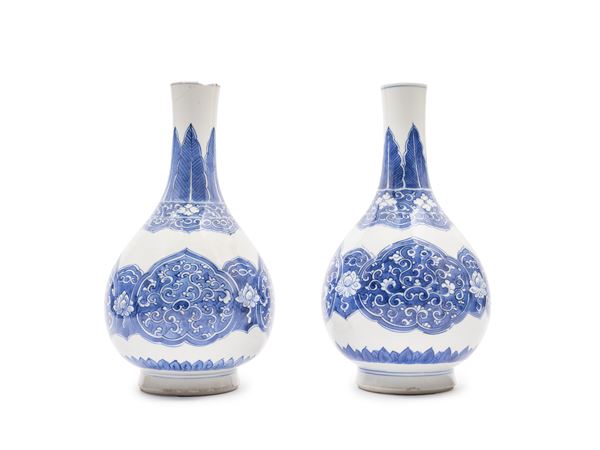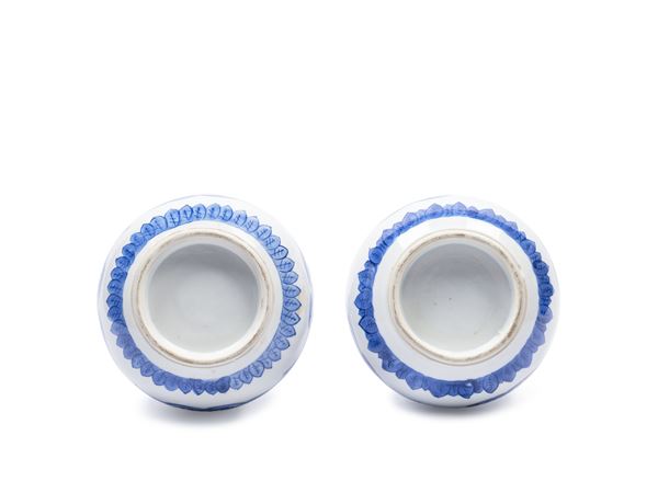 COPPIA DI VASI IN PORCELLANA BIANCA E BLU, Cina, dinastia Qing, periodo Kangxi (1661-1722)