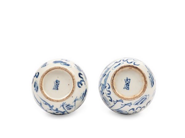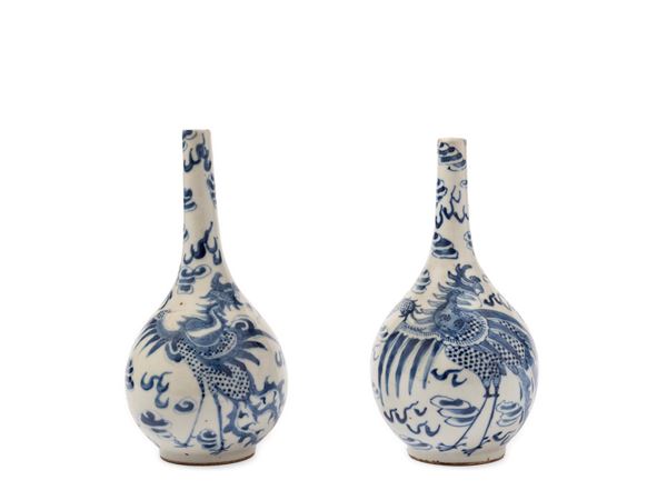 COPPIA DI VASI IN PORCELLANA BIANCA E BLU, Cina, dinastia Qing, secolo XIX