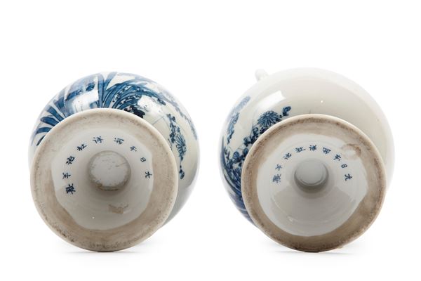 COPPIA DI VASI IN PORCELLANA BIANCO E BLU, Giappone, XIX secolo