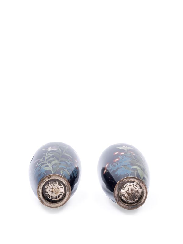 COPPIA DI VASI IN SMALTO CLOISONNÉ, Giappone, periodo Meiji (1868-1912)