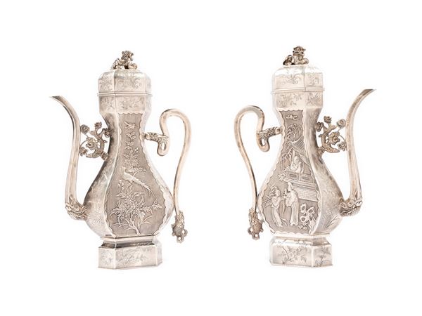 COPPIA DI VERSATOI IN ARGENTO, Cina, dinastia Qing, fine XIX secolo